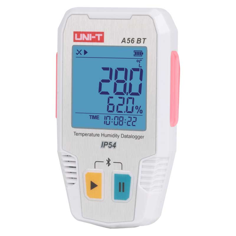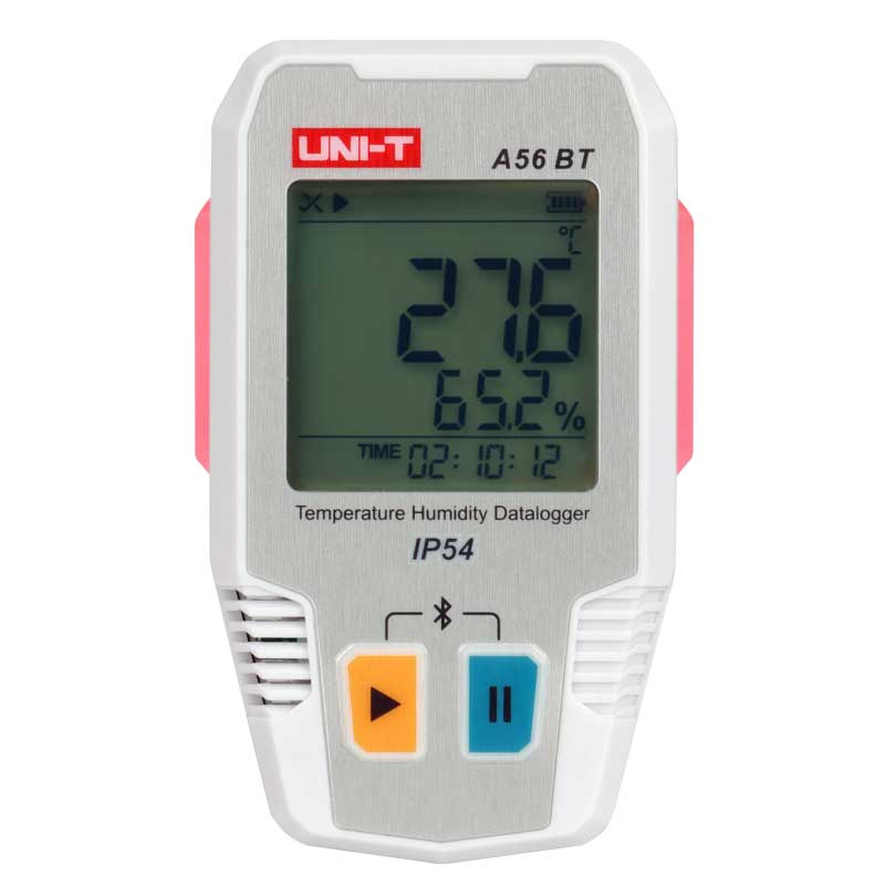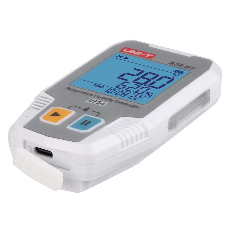 A56BT Bluetooth Temperature Humidity Datalogger is using high-accuracy digital temperature humidity module as the sensor, and with low-power microprocessor. It features high accuracy, large storage capacity, auto record, time display, LED sound-light alarm, ultra-low temperature record and etc. Meanwhile, it supports to modify records, view data and export PDF report via the mobile App or PC software. The datalogger can satisfy high-accuracy measurement and long-time temperature humidity record requirement in different conditions, widely used in the food processing, cold-chain transportation, storage and etc.