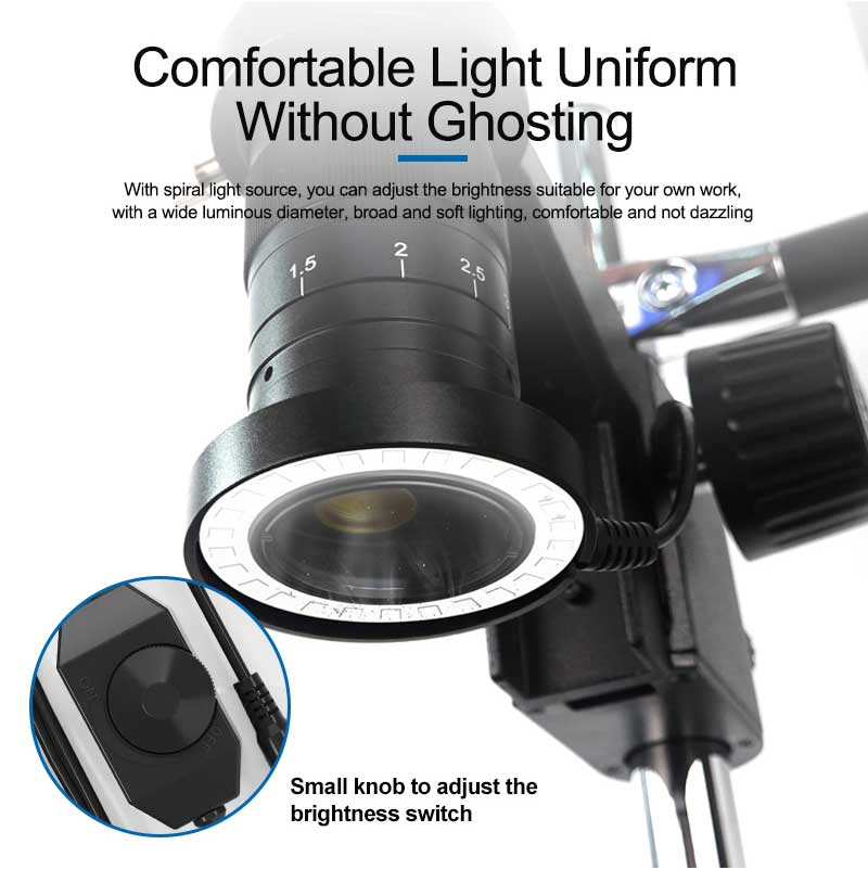 - With spiral light source, you can adjust the brightness suitable for your own work, with a wide luminous diameter, broad and soft lighting, comfortable and not dazzling