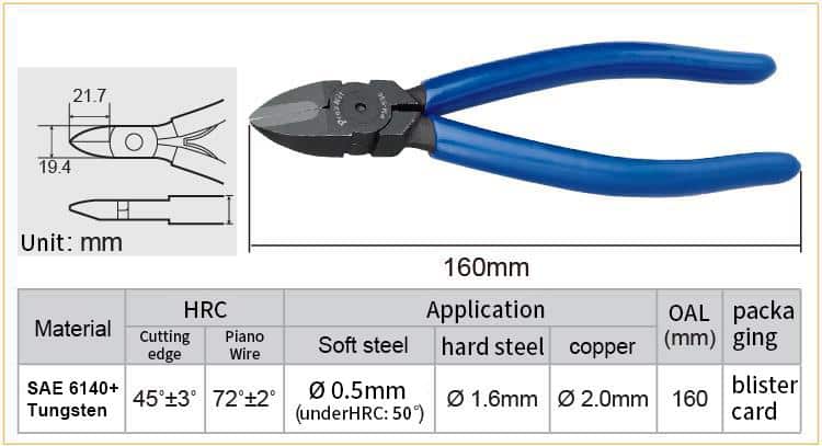 PM-956 Tungsten Diagonal Cutting Plier (160mm)