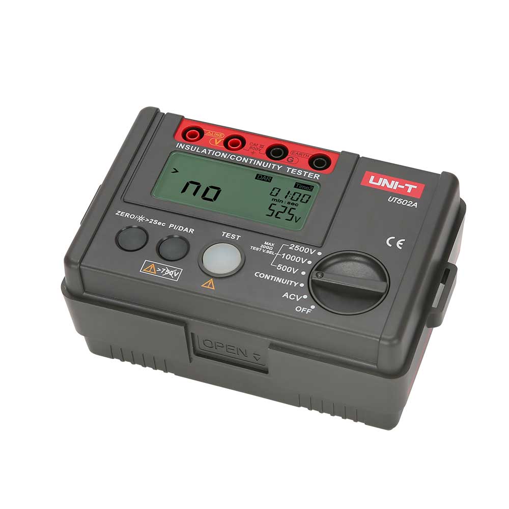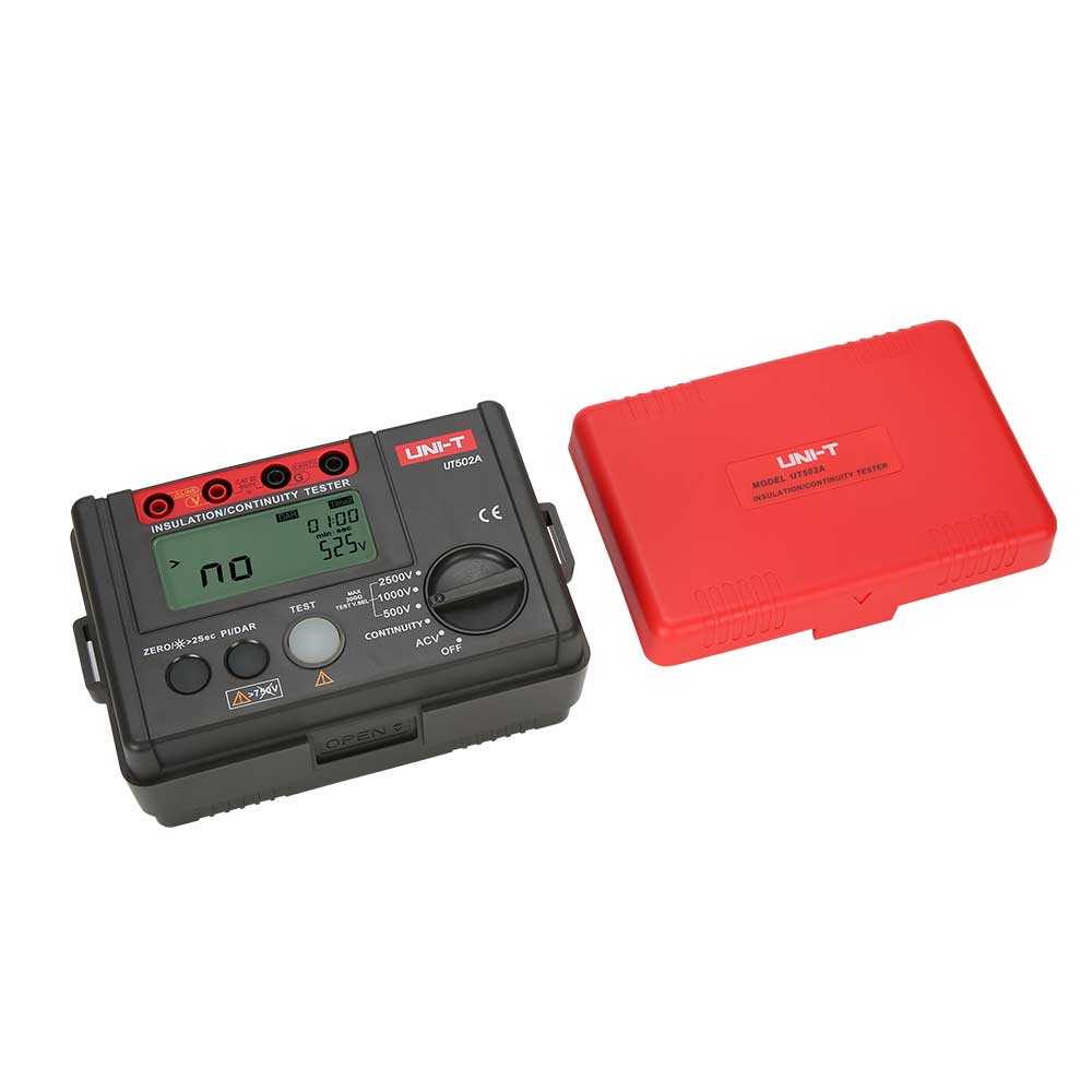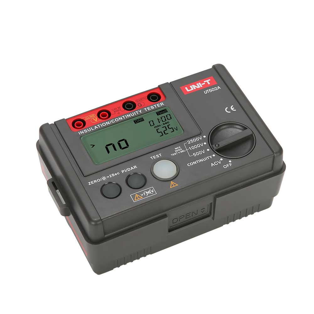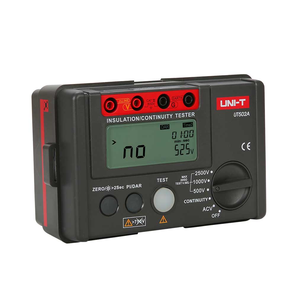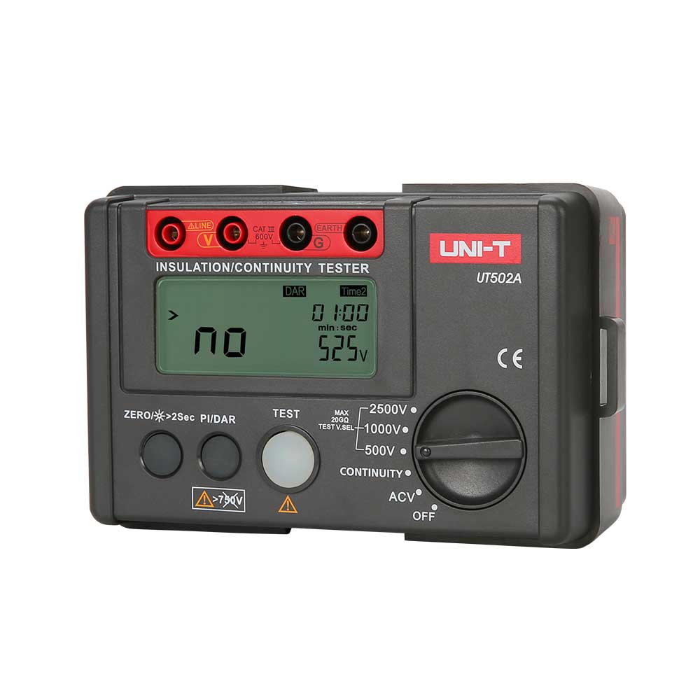 UT500 series insulation testers are used to measure the insulation resistance of electrical equipment and household appliances. This is done by measuring the insulation resistance between electrical circuits or between circuits and ground. UT500 series can measure insulation resistance, AC Voltage, low resistance, PI (Polarization Index) and DAR (Dielectric Absorption). These are dieal tools for ensuring transformers, genera-tors, high voltage motors, capacitors, cables, arresters and other electrical equipment that can oprate in a safe and accurate manner.