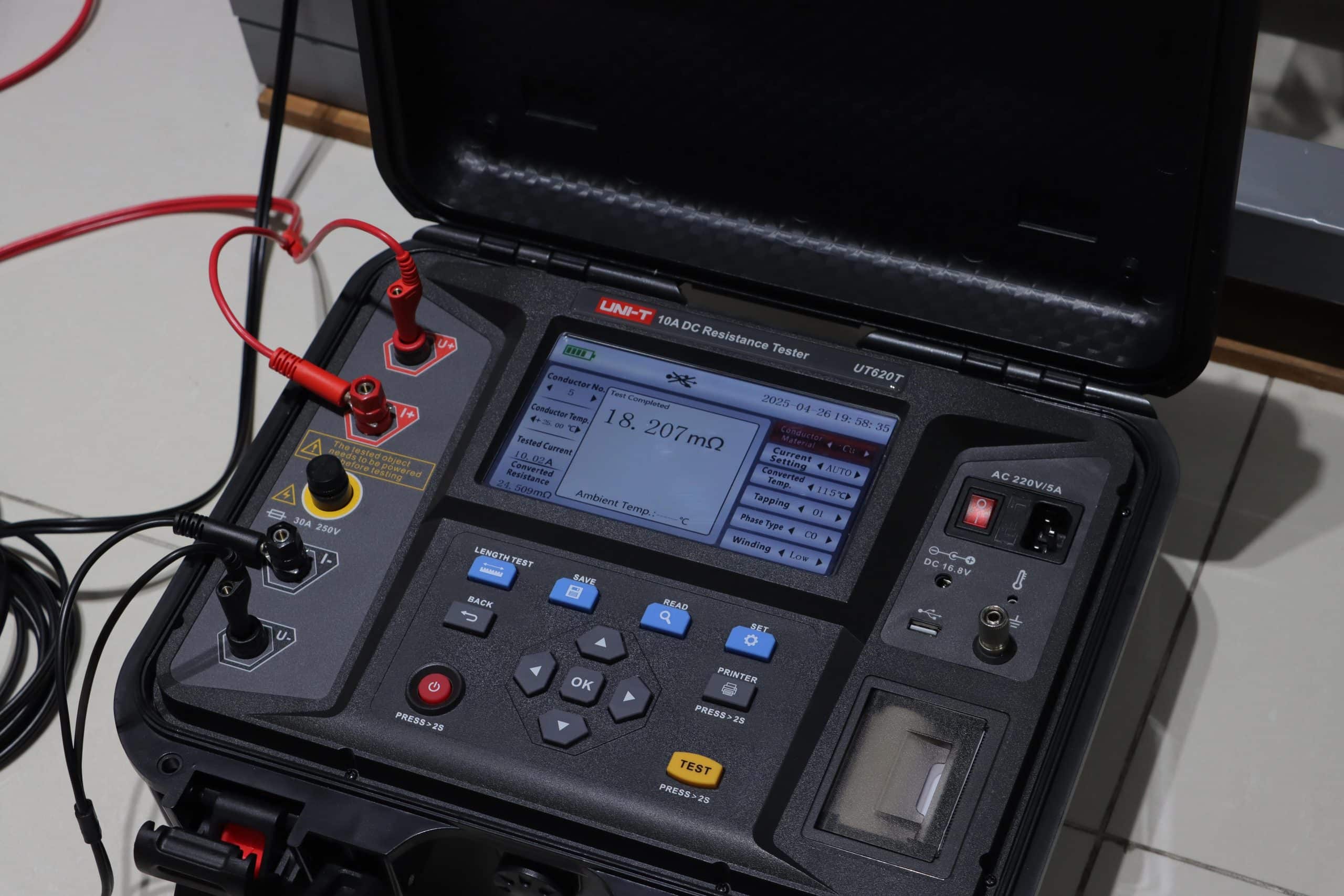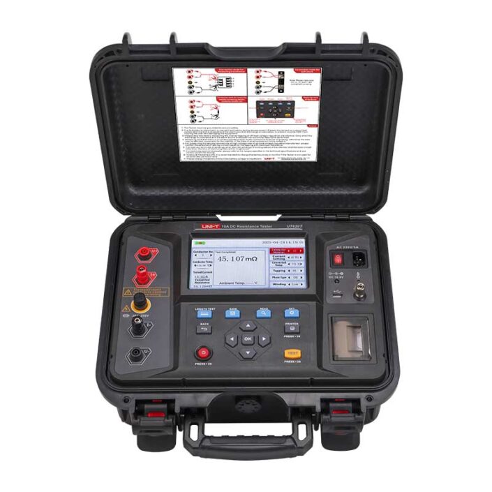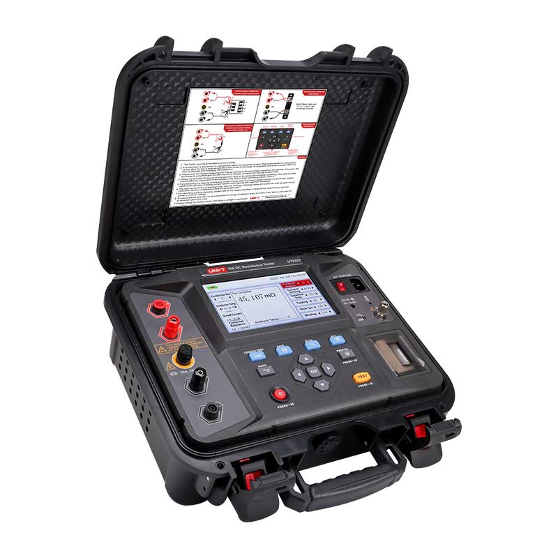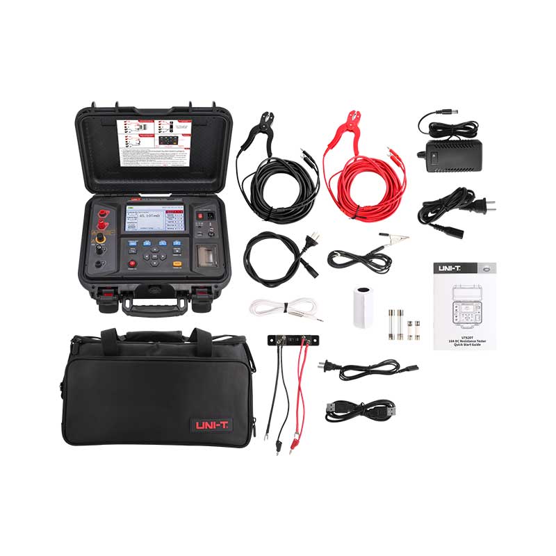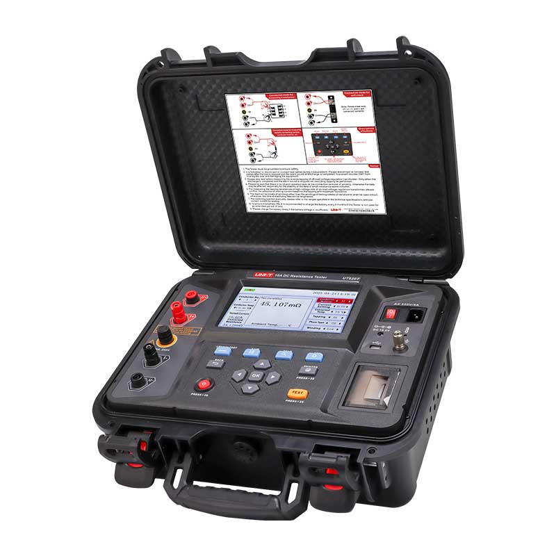 The UT620T DC Resistance Tester, also known as the Transformer DC Resistance Tester or DC Resistance Fast Tester, adopts the four-wire measurement method, ensuring safety, precision, and reliability. It is widely applied in telecommunications, power systems, meteorology, data centers, oil fields, power distribution lines, transmission towers, gas stations, factory grounding networks, lightning rods, and other fields for DC resistance measurement.