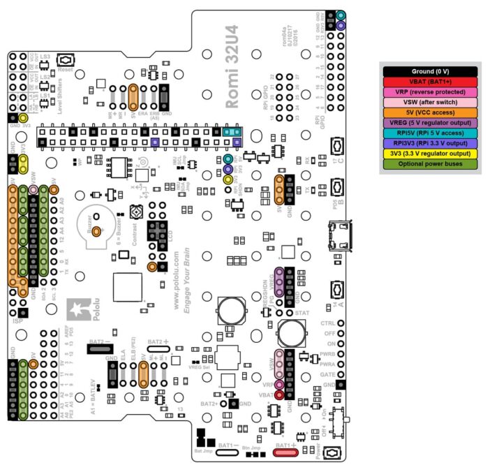- The Power Distribution Board for Romi Chassis only includes reverse voltage protection and a pushbutton power switch circuit; it is intended to be a convenient way to access the chassis’s battery power and pass it on to the rest of your electronics.