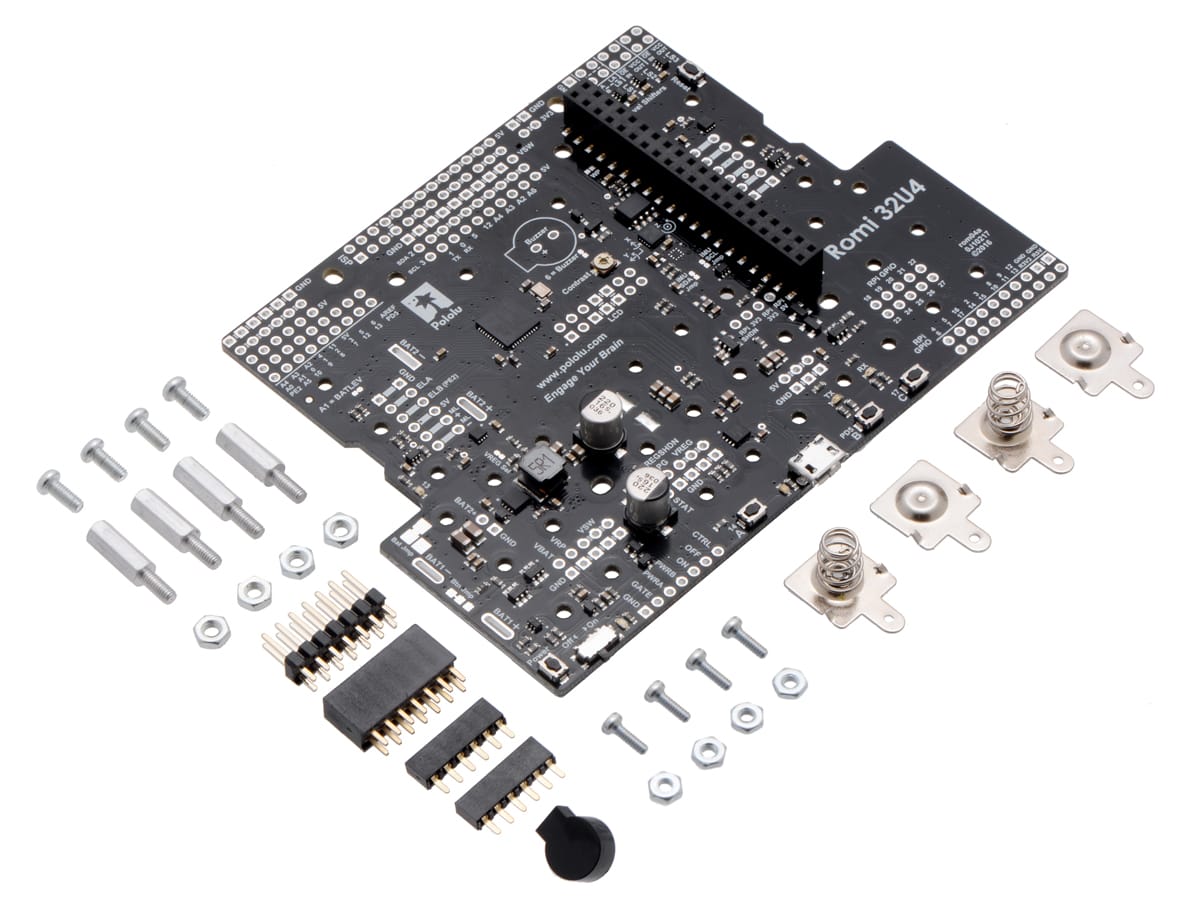 The Romi 32U4 Control Board is designed to be assembled with a Romi chassis to create a capable integrated robot platform that can easily be programmed and customized.